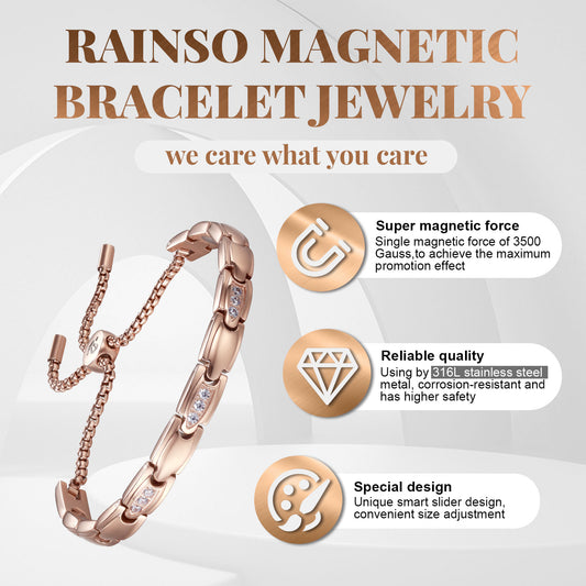 RainSo Powerful Women's Rose Gold Stone Magnetic Therapy Bracelet