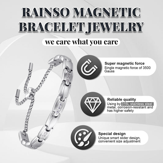 RainSo Powerful Women's Silver Stone Magnetic Therapy Bracelet