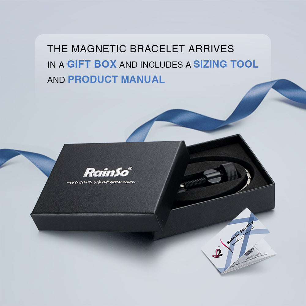 ✔️PERFECT SUITABLE SIZE: This magnetic bracelet arrives at 8.5 inches (21.6cm) in length and includes a FREE adjustable tool that allows you to remove/add links to make it the perfect fit for your wrist. If you need to add more, you can contact us to provide additional links. ✔️THOUGHTFUL GIFT: This magnetic bracelet arrives in a luxurious black gift box, sizing tool, and instruction manual - making it the perfect gift for a friend or loved one.