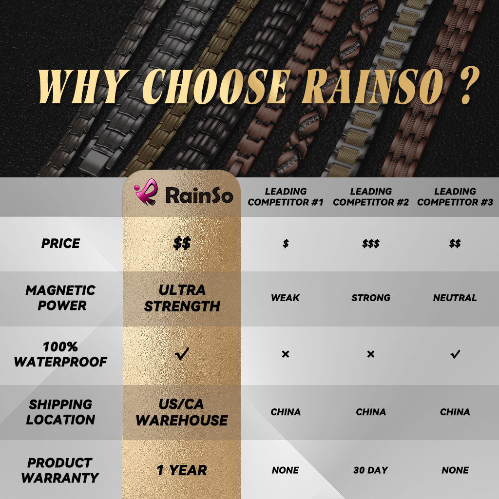 ✔️PREMIUM QUALITY:  Meticulously crafted with medical-grade stainless steel (316L) and finished with ion plating (IP) which is hypoallergenic, durable, and will not tarnish. Don't worry about irritating your skin or causing allergic reactions. ✔️PERFECT SUITABLE SIZE: This magnetic bracelet arrives at 8.5 inches (21.6cm) in length and includes a FREE adjustable tool that allows you to remove/add links to make it the perfect fit for your wrist. If you need to add more, you can contact us to provide additional links.